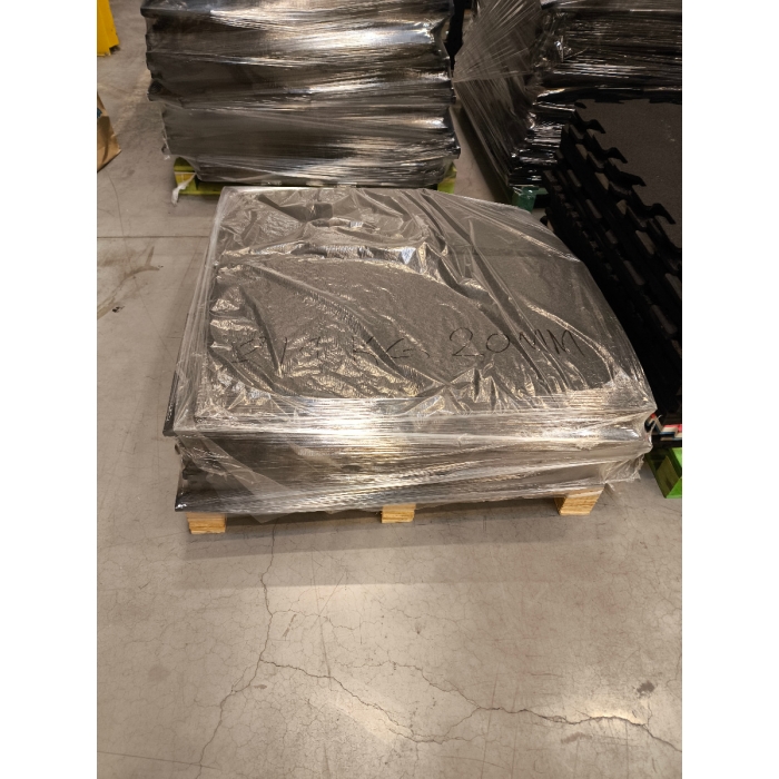 Pall med blandade restbitar av gummigolv med en tjocklek på 20 mm för symboliska 1 kr/pall (+ frakt) eller hämtning på vårt lager. Perfekt som prisvärt skydd i garage, förråd eller hemmagym. Bitarna kräver kapning och ger en mosaikkänsla – vill du ha en helt enhetlig finish kan du lägga ett 10 mm gummigolv ovanpå.