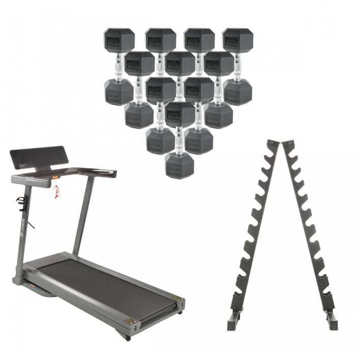Cardio & Hantelpaket är hemmagymmet för dig som gillar enkelhet: ett löpband för konditionen, ett helt hantelställ för styrkan – klart. Du slipper trängas på gymmet, slipper vänta på utrustning och kan istället köra dina pass precis när det passar dig.