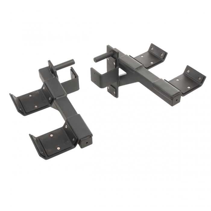 Gör hantelpressar både smidigare och säkrare med TF RX Dumbbell Holders. De här rackmonterade hantelhållarna låter dig lägga upp ett par hantlar på varsin sida av ditt TF RX-rack – perfekt när du vill komma i startposition utan att “kicka upp” hantlarna från knäna varje set.