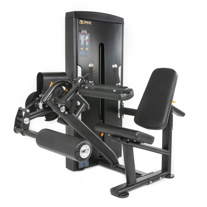 Thor Fitness Weight Stacked Seated Leg Curl är en kraftfull maskin med svart pulverlackning i robust stål.